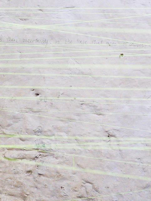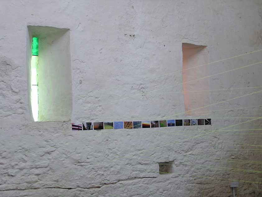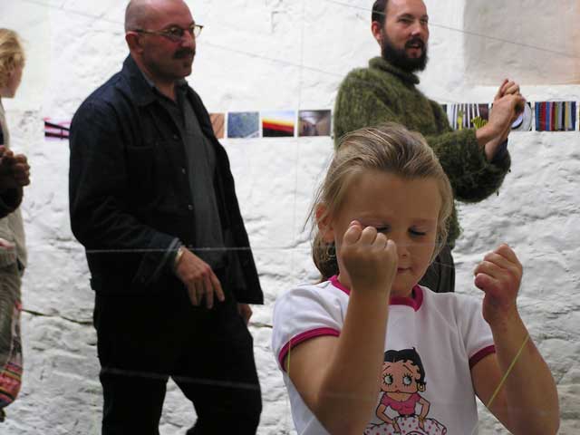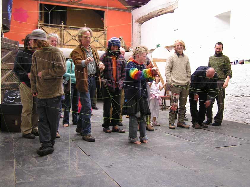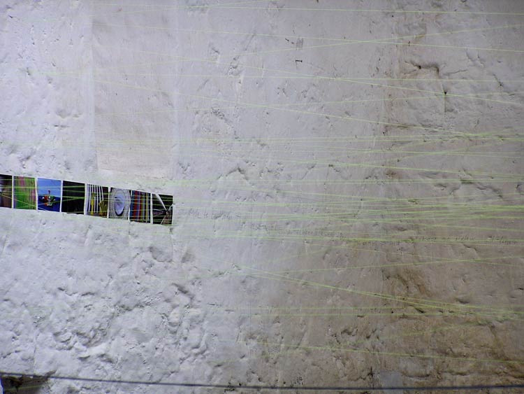 As an specialist on Ley Lines and Sacred Geometry hold a lecture on the subject earlier that day, l made my indoor installation taking the several meanings of Lines and Ley, which in Spanish means “law”, to play with concepts inviting the public to interaction, to break the law of the straight lines which –the wise Chinnese say- were created by the Devil, and which demons use to travel and cause evil. Breaking the law that imposes submission and connecting with Universal laws that allow the spiral flow of life was the concept laying on it..