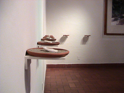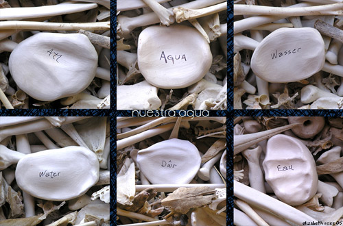 25 piezas: plato de barro, arena de mar y cerámica bruñida con la palabra AGUA escrita en 25 idiomas distintos.