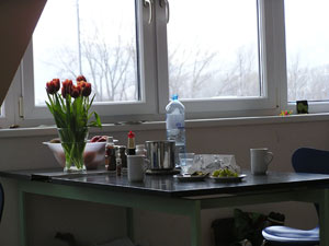 Hablé con Hartwig sobre mi tiempo en Krems, su opinión sobre mi trabajo (bueno, ambicioso y político) y que pudiera existir la posibilidad de volver, aunque aún están reestructurando el programa de artistas en residencia...y vaya que les falta un buen. A las 8 en punto llagan Mun Leng y Lee Kwang. Minutos antes había llegado Arno, un chavo que nos ha venido siguiendo desde el 22, que le interesa mucho el arte, pero se siente disminuido porque no estudió nada, y es mecánico de bicicletas. Pero asiste a todas partes en donde puede tener contacto con arte y hasta toma clases de pintura dos veces a la semana. Es muy demasiado calmado. Su frecuencia es muy ligera, digamos. Cenamos pasta y tres ensaladas tres. Llevó el Ivol y confirmo que para nada me cae bien, ya conozco ese tipo de hombres que hablan sin dar oportunidad a nadie más, que creen tener la neta del planeta y que, además, agreden a quienes no lo soportan sin protestar...léase a mi. Pero se va pronto, ya que acabo corriéndolo, que también para decir lo que siento con las puras vibras me las gasto sola... lo más chistoso es que mañana nos vamos juntos a Wien, porque Franz nos da el aventón...ni modos.