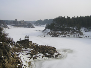 Vuelvo a ver nieve, mucha nieve. Colinas, campos abiertos, nieve por todos lados, como debe de ser, jeje. Que bien que vine! Y Claudia me lleva a conocer un lugar muy hermoso, la presa Stausee, que contiene las ruinas de un castillo feudal, el Lichtenfels. Ahí ella menciona Las nieblas de Avalon. Todo hermoso, pero el viento helado creo que me afecta la garganta y ahora peleo contra ese bicho, no otra vez! al llegar y al irme? no, me niego a aceptarlo, no me voy a enfermar.