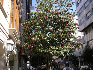 El recorrido hasta Vilagarcía de Arousa está salpicado de informaciones y anécdotas sobre el lugar. Aquí nació fulanito el escritor, en este pueblo se hacen las luchas de barcos vikingos(!!!!!), allá está la cruz de Santa Rita, que se escapó del monasterio por un túnel y fue a aparecer en la cima de ese cerro.... de esta ría se extrae el mejor marisco de toda Galicia, que es decir del mundo. Al otro día la primera caminata, siguiendo a la azul de Marta. Impresionante estar bajo el sol, entre camelias floridas, en un mundo totalmente distinto al que dejé en Stuttgart. Fuimos a su taller también, donde da clases y pinta. Ahí se tomó su prueba de sangre. Siendo diabética los cuidados que debe tener son muy excesivos. Pero ese día la azúcar la tenía muy bien. |