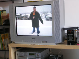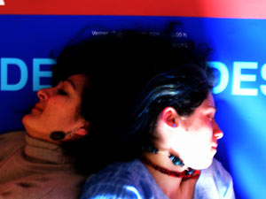 Suzanna se va al trabajo, pero hoy sale temprano. Yo salgo a caminar una hora antes de nuestra cita, para así retomar el proyecto de Mun Leng, porque es difícil dejar se hacerlo. Quedé con ella de que así lo haríamos, y al subirlo a la red, intercambiamos información y aunamos visiones. Es entonces que camino de 11 a 12 por la hardtrumstrasse, y aprovecho para pegar un cartel también. Estoy fuera del museo Migros (Migros poseé todo Zurich, parece. Balnearios, museos -varios-, supermercados, bancos....)y mi amiga llega a las 12 justas. y a ver arte. Una expo colectiva multimedia. Algunas cosas interesantes, otras muy jaladas de los pelos, unas más como jueguitos para Papalote (el museo del niño)....que difícil hacer uso de las nuevas tecnologías dentro del arte sin parecer gameboy. esta obra, o parte de, se llama Love Junky, y la verdad, no se el nombre de la artista.