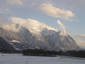 el viaje transalpino A las 9.20 tomo el tren a Zürich. Ana me lleva a la estación (para asegurarse de que me voy, dijo). La verdad que ella y Helmut fueron una bendición, me acogieron con gran generosidad durante todos esos días en la ciudad que celebra los 250 años mozartianos. Es una madre por vocación, que, como muchas, reniega a la vez que da. Y su pareja es envidiable. Nunca perfecta, que nada lo es, pero bastante entrañable, según pude ver. Me gustan esos dos. Ahora en el tren, a cruzar Austria a lo largo: Salzburgo, Innsbruck, los Alpes. Paisajes bellísimos. Mi compañía es una vienesa que se va tres semanas a un bad (very good bad, aguas termales cerca de Salsburgo, un ingeniero, Gottfried, que va a la frontera a presentar su libro y que estuvo seis meses en Kuala Lupur construyendo los cimientos de las torres gemelas de Malasia, y, ya en Suiza y después de pasar revista con la policía migratoria, una señora ya grande con la cual me aventuré a hablarle en alemán. Bella ella.