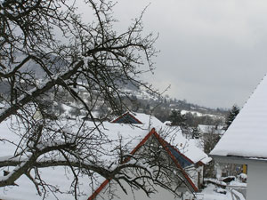 ![]() el viejo Zell.... mi tercera vez en este pueblo que parece de chocolate, con merengue ahora. Las mismas personas conocidas, en las que puedo ver el paso del tiempo, como en Rolf, las que parece que fue ayer, como Abram o Inge. Los mismos lugares, como la panadería, o la bomba de agua ahora congelada. ES muy rico poder experimentar un mismo lugar de diferentes maneras. Como el no quedarme en casa de Rolf sino repartirme entre Inge -donde paso la mayor parte del tiempo- y Heni, donde duermo. Una trabaja en el hospital siquiátrico -uno de los centros de actividad de Göppingen- con unos horarios distintos cada día. La otra acaba de sufrir una cirugía bucal. Una vive con tres hombres, Wolfgang, su pareja, Jan, su hijo y Tobías, hijo de una amiga. Los tres viven conectados a la computadora. La otra vive sola.