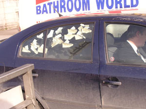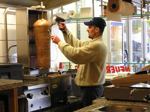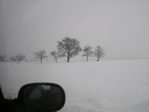 tempranito, a las 7.30, vamos a la Brasserie del complejo habitacional este a celebrar el cumple de S. Café, pan y amistades. Ella tiene que trabajar hoy, pero en la noche s va a Scuol a pasar una semana esquiando. Me ayuda a llevar mis cosas a la estación y a las 11 me subo al tren rumbo a Stuttgart. Cruzar la frontera, cambiar de país, es tan fácil! Aunque ahora hay policías que piden el pasaporte, cosa que antes no sucedía. En Göppingen espero a Inge en el pequeño bar turco que hay en la estación. Me tomo media cerveza, que me cuesta un euro y el hombre que atiende posa para mi, mientras rasura este döner, supongo el trompo de carne al pastor original, que es de carnero, no de cerdo. Inge llega por mi para ir a Zell. Sigue nevando, la gente aquí ya está harta. El paisaje que conozco verde ahora es uniformemente blanco. La Aichberg, el cerrito que ellos llaman montaña, muestra su calva blanca. Me da gusto volver a Zell por tercera vez. Le cuento a Inge mis cuitas, mis proyectos, las ganas de hacer una vez más la acción del árbol por el día de la Mujer. Ella se pone a trabajar de inmediato. Es excelente organizadora, mi agente alemana....llama a Rechberghausen. El jueves 9 realizaré la acción ahí, con el apoyo del Rathaus, cosa que no era necesaría pero si es útil, al involucrar a los gobiernos en el conocimiento del caso Cd. Juárez, en el caso generalizado de la violencia contra las mujeres. Super! |