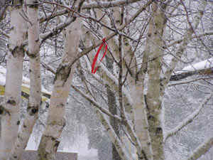 en el camino a la rote fabrik me encuentro un grupito de abedules. Ahí me detengo, quiero dejar un mensaje por las mujeres. al salir de la fábrica roja, mundo del graffiti, la nieve es tanta que no la crees. S se queja: en marzo! |