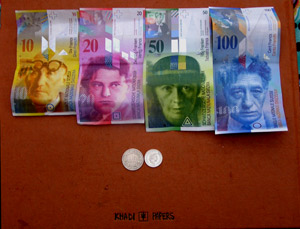 al llegar a Zürich me encuentro con la Suizannita. Cambio unos euros por francos. Me necantan estos billetes, tan coloridos y con la imagen de sus grandes contemporáneos, como Curvosier. nos subimos (con trabajos) en el tram 4, viejo conocido. Hay mucha gente y el viento se lleva un papel que se escapa de la carpeta que compré en Viena para transportar las fotos....es el dibujo de Helmut, ay. adentro me encuentro con que no se permiten mexicanos cancioneros, entre otras cosas. Suzanna de inmediato me dice que eso está por quitarse, porque todo mundo protestó....vaya la famita! Al llegar e instalarme subimos a la azotea, que hoy hay reunión del Circolo, que reúne a los vecinos del kraftwerk cada mes a cenar. Me doy cuenta de cuánta gente -suiza- habla español. Lo prefieren al inglés. Además veo caras conocidas, como la de Fátima, la brasileña, con quien quedo de salir mañana. ahhhh, la camita! |