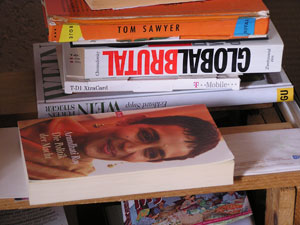 Voy a casa de Claudia a ver su última obra, una serie de fondos (de mujer) bordados con escenas eróticas chinas y el video que le hizo Freddy, ambas muy chidas. Después me acompaña a la embajada, a llevar las cartas que se firmaron exigiendo solución al "asunto Juárez". Se que no servirá de nada, pero al menos se hace hincapié en que existen gentes en un lugar como Vienna que saben, se indignan, se duelen de esas infames muertes. En unos días llega Fox por estas tierras..... debería de recibirlas entonces. Después caminamos por los alrededores de la embajada (en Opernstrasse) visitando las galerías que hay por ahí sin encintrar nada que valiera la pena hasta la Fundación Generali, donde hay una expo sobre el cine bastante buena. Nos vamos a tomar un prosecco al bar del Kunsthalle donde está la obra de Stephan Cohen, quien explota todas sus características con gran éxito: es homosexual, judío, blanco y sudafricano. Nos despedimos en el U bahn. Tal vez nos veamos pronto en Morelia. Camino una vez más por la Mariahilferstrasse. A las seis llega Sheida, y luego Sabine, que regresa de Krems. Nos llegamos a querer en este tiempo. Gracias a ella, en principio, Krems no fue páramo humano. Ahora me trae la foto que salió publicada en el NÖN, semanario de la Nieder Österreich, donde estamos ella, Mun Leng,y yo bajo el árbol. Le doy la llave del buzón y un mapa de los que me dieron en la embajada. Se acaba el tiempo, mi último día en Viena.