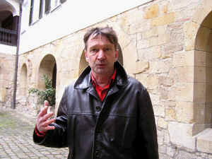 ![]() Desayuno con Rolf, mi enlace con Zell y mi amigo desde hace casi 20 años. Un día llegó a mi puerta junto con su novia Elizabeth y me enseñó a hacer honig küchen, el pastel de miel que hago cada fin de año. Una delicia. No lo volví a ver hasta el 2002, en que vine a dar la conferencia en el Keramik Westerwald Museum. Esta vez él anda muy líado con su museele(.de), conferencias y viajes a Berlín. Me pide que lo acompañe a Tübingen a hacer una tour fotográfica de los sitios claves de la psiquiatría en esa ciudad, para utilizar las fotos en su ponencia para un próximo congreso. vale, me encanta la idea. Después iremos al museo Ritter del chocolate. Tübingen es hermoso (ver la pata de perro correspondiente); cruzado por el río Neckar, es un pueblo con arquitectura del 1600, una historia literaria (aquí vivió y aquí vomitó Goethe, aquí enloqueció Hölderlin), siquiatrica (desde el viejo manicomio hasta la casa donde Alzhaimer descubrió la enfermedad del olvido). Historia de guerras de cientos de años, con la fosa común cavada por los nazis, y también historia del conocimiento, con una de las universidades más viejas y prestigiadas, y, by the way, un feminismo firme y fuerte. Después del recorrido fuimos por unos sus amigos para ir al museo Ritter, con una historia del chocolate ritter y una tienda, claro. Además, la familia tiene tanto dinero que ha construido un ala dedicada a arte contemporáneo cuadrado...si, todo gira alrededor del cuadrado, como los chocolates que fabrican, cuadrados. Y debo decir que tienen buena obra. |