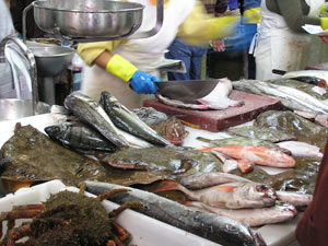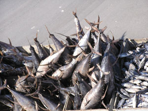peces, peces de ciudad, peces inmensos de cabeza, enseñando las colas tiesas asomando, como si todos escucharan un extraño llamado desde el fondo del camión que los transporta. Peces de ciudad recién pescados en el mar ahí namás, con sus grandes bocas, sus cuerpos blandos, sus tentáculos chorreantes. prefiero los peces en el plato.