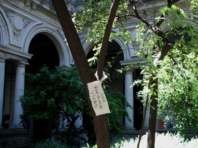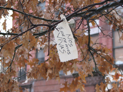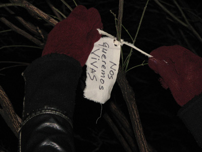 Cuando decimos Las queremos vivas  decimos que queremos la vida para todas y cada una de las niñas y mujeres que habitan en cualquier parte del mundo. El árbol significa la jornada desde el inframundo (el invierno, la muerte) al mundo (la primavera, la vida), y está en un espacio público, como público es el tema.
