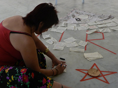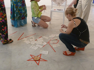 Baum als Zentrum der Aktion symbolisiert das zur Welt kommen,