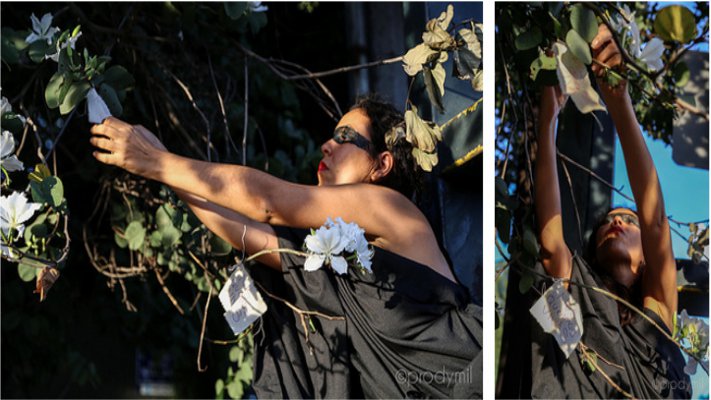 Baum als Zentrum der Aktion symbolisiert das zur Welt kommen,