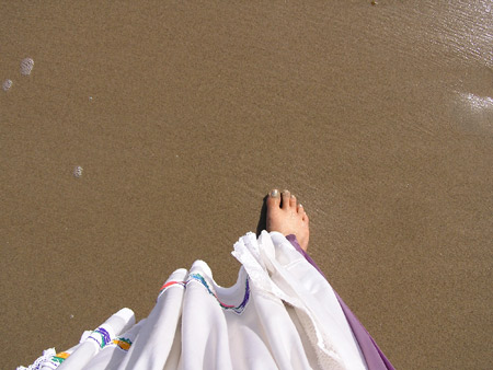 perezca nunca. Utilizo un traje original de la región de Caracuaro, precioso regalo de tres jóvenes mujeres purépechas, Juana, Angelina y Rosalba. Viajé por Europa realizando este ritual para honrarlas, y en ellas a todas las mujeres indígenas.