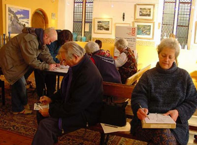 after a long stay in London's Saint Thomas Hospital ... l spent a wonderful weekend in Janet and Eckhard Kaiser' s Capel Celfyddyd , in Criccieth, a small town of beautiful Wales and -after offering the lecture- participated in The World's Biggest Draw saw much of Gwynned... Janet Kaiser, in her The Cronicle, tells my story to the welsh and friends. Take a look...