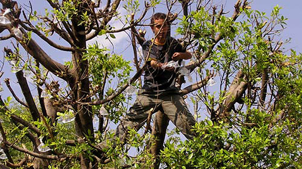 sobre un árbol frente a Casa de Gobierno, Morelia 2005