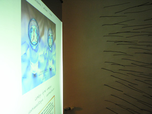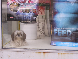 y para el balance más que necesario, las pláticas con mis vecinos del 23, Goh Lee Kuang y Lau Mun Leng, artistas multimedia de Malasia de trabajo muy interesante (pienso en identidades 07). Ella, Mun Leng, me invitó a participar en su nuevo proyecto Una hora caminando, que empezó en Berlín. A las 4 salimos rumbo a Stein, subimos la mitad de la colina escalonada por los weingarten, los viñedos, sin decir una palabra y en fila india, unas veces guiando ella y otras yo. Pegué el primer cartel en esta ciudad y registramos puntos y escenas que nos llamaron la atención. Estoy dispuesta a hacer esta caminata diaria con ella, ya que de por si camino todos los días. Veré mis reacciones al caminar acompañada pero sin poder hacer comentarios. Registraré mis pasos de una nueva manera, más dirigida. Haré mi propio mapa visual de este lugar. A partir de hoy ese registro estará en este web, se llama Pata de perro y para llegar a él solo hará falta hacer click en la siguiente huella de perro, de esos que pululan atados a sus amos y llenan las calles de cacas: Ella es Mun Leng: y durante la caminata tomó las siguientes imágenes: