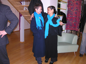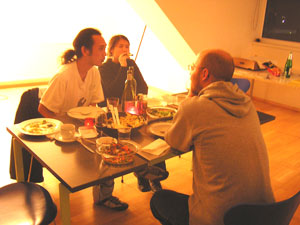 Vemos al jefe Hartwig y a Lee Kuang cargando las escaleras que nos sirvieron para llegar a lo más alto posible del kastanienbaum. La noche se acerca. (Y se podrá encontrar informacion más puntual sobre unter rot en su lugar correspondiente dentro de este ciber espacio, a su debido tiempo). Me preparo para presentar i d e n t i d a d e s en la Literaturhaus y es también un éxito, aunque nadie haya tomado fotos. La tercera parte, el tercer capítulo, el tercer acto, es el Unter rot: ya basta! propiamente dicho.... tikitiki pero me encanta. Se firmaron cartas que se harán llegar a la embajadora en Austria, Eslovenia y Eslovaquia, Patricia Espinosa, así como a la prensa en México, como simbólica manifestación de conciencia, Se habló de la relación entre las poblaciones a través del arte, del dolor reflejado en el propio cuerpo, de la incomodidad de ciertos hombres sensibles (de los otros no se sabe) ante las fotografías de la serie. y se pasó, además, un buen rato. como lo demuestran estas fotos: Petra y Ana en azul, Cordelia, Lee Kuang, Mun Leng, Franz y...no se su nombre pero cómo participó, y quedan comentario pendientes de curadores y críticos, que estaban suficientemente pedos como para opinar......