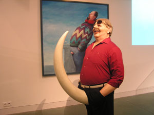 Después de hacer presencia en el Kunsthalle, me voy con ellos a ver la de Diex, el monero que inauguró al mismo tiempo que yo, quien pinta a los austriacos de la manera más, digamos, soez, irónica y burda, si, todo eso. Y aunque hay algunas cosas que me gustan, como este soñador, la verdad n os pareció muy jalado de los pelos.