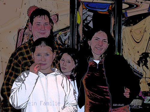 Después caminamos hasta casa de los Schulmeister y Claudia me mostró su negocio, que es una super papelería y una imprenta. De los negocios que me gustan. Me regaló, linda ella, algunas cosillas, especialmente un libro sobre el Waldviertel, la zona boscosa de por acá, Baja Austria. Luego comimos pizza (mini pizzas para los adultos y grandes para los niños), bebimos un licor de salvia hecho por Christian y Bárbara (que también es artista, teje a gancho de locura, envuelve cualquier cosa con un apretado tejido gris), y Martin me mostró un comic de Christian que ellos imprimieron, el ejemplar número 1. Trabaja con fotos alteradas en fotochop, más o menos así: Y fue llegar a casa y descargar la memoria en en diario. Me voy a la cama a las 4 de la mañana. , para despertar a las 8 con la garganta jodida. Me levanto a hacer gárgaras con Tea Tree y ya me quedo despierta. Ahora me siento mejor. |