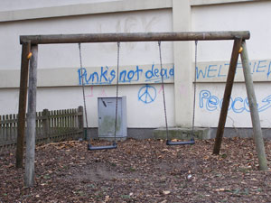 ![]() Se fue Yvonne. La fui a dejar al tren y volvió esa sensación dormida de quedarse sola. Es loco, porque usualmente lo estoy. De regreso pregunté por unas impresiones que hacen falta, especialmente para los carteles de la semana que entra. Cómo vuela el tiempo me quedan tan pocos días ahora! Ya preparo las estaciones siguientes, preparo mi mente y mi cuerpo para continuar la travesía. En el camino de regreso al Kunstmeile, junto a un kiosko que había visto de lejos, me topé con estas pintas. Del columpio a la pared, pizanlove.