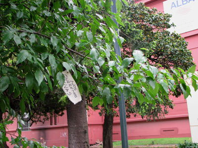 Plaza San Martín, sobre un ceibo (Erythrina crista-galli), la flor nacional