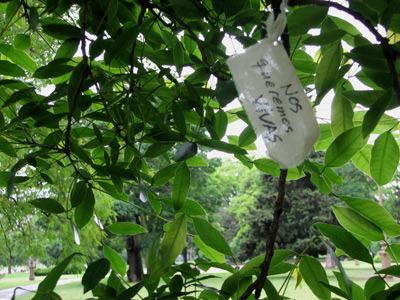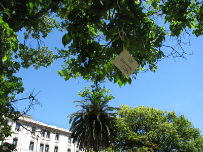 Cuando decimos Las queremos vivas  decimos que queremos la vida para todas y cada una de las niñas y mujeres que habitan en cualquier parte del mundo. El árbol significa la jornada desde el inframundo (el invierno, la muerte) al mundo (la primavera, la vida), y está en un espacio público, como público es el tema.