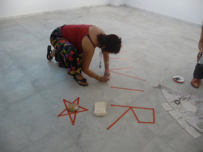 Baum als Zentrum der Aktion symbolisiert das zur Welt kommen,