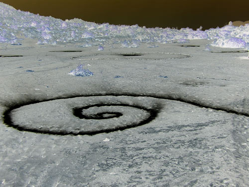 spreads. The space is delimited by 7 open spirals, 2 more marking