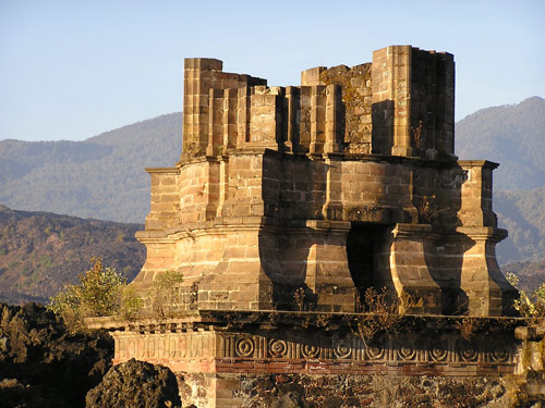 In a piece of land belonging to San Juan Paricutirimicuaro or San Juan de las Colchas, the youngest american vulcano was born at 17,30 on February 20, 1943: the Paricutin. This caused displacement to several people towns, but no deaths. With its aggressive and amazing landscape, formed by lava and vulcanic sand intertwined with pine forests, has been a subject for art since the beginning. Many still living people watched the performance of its developement, among them, my mom. |